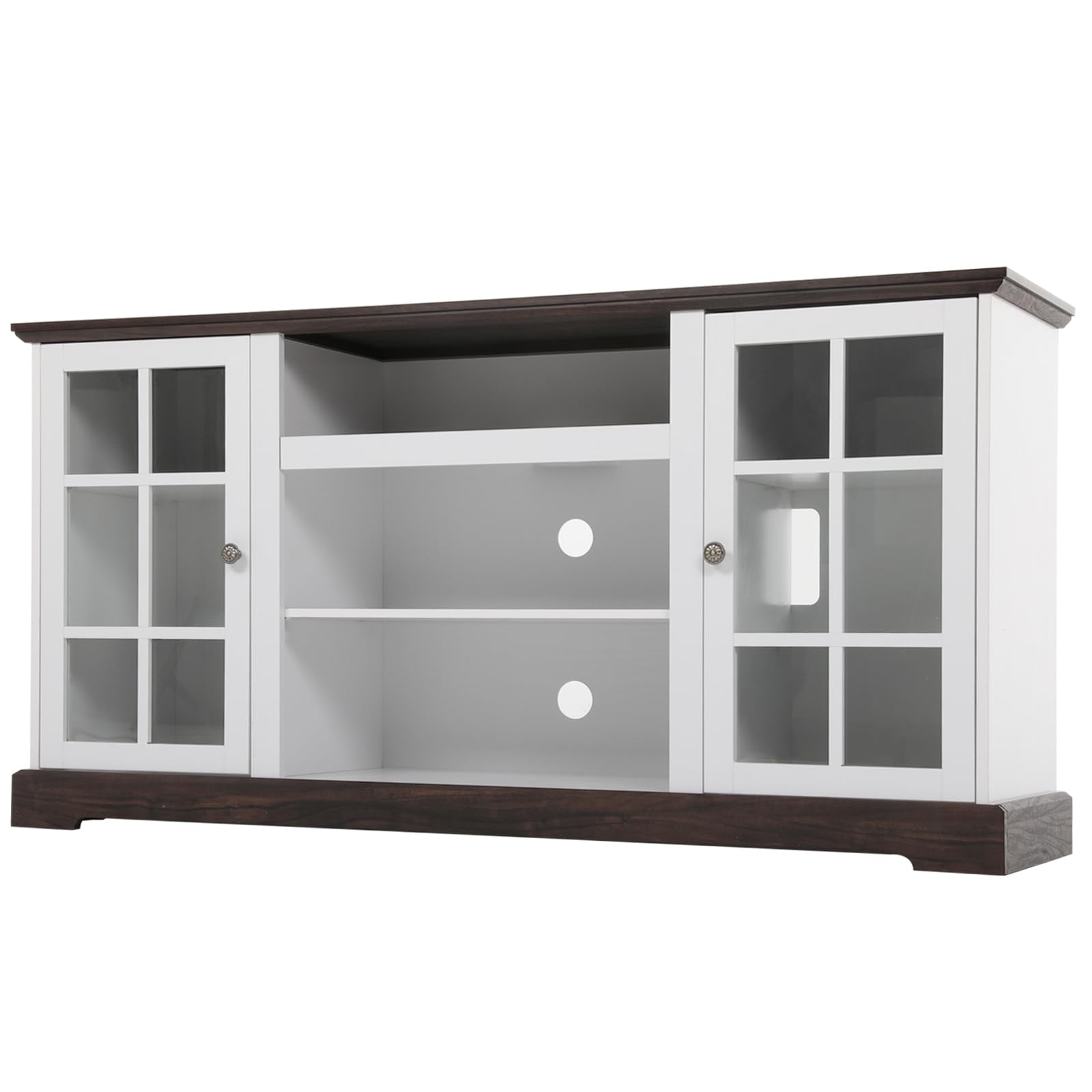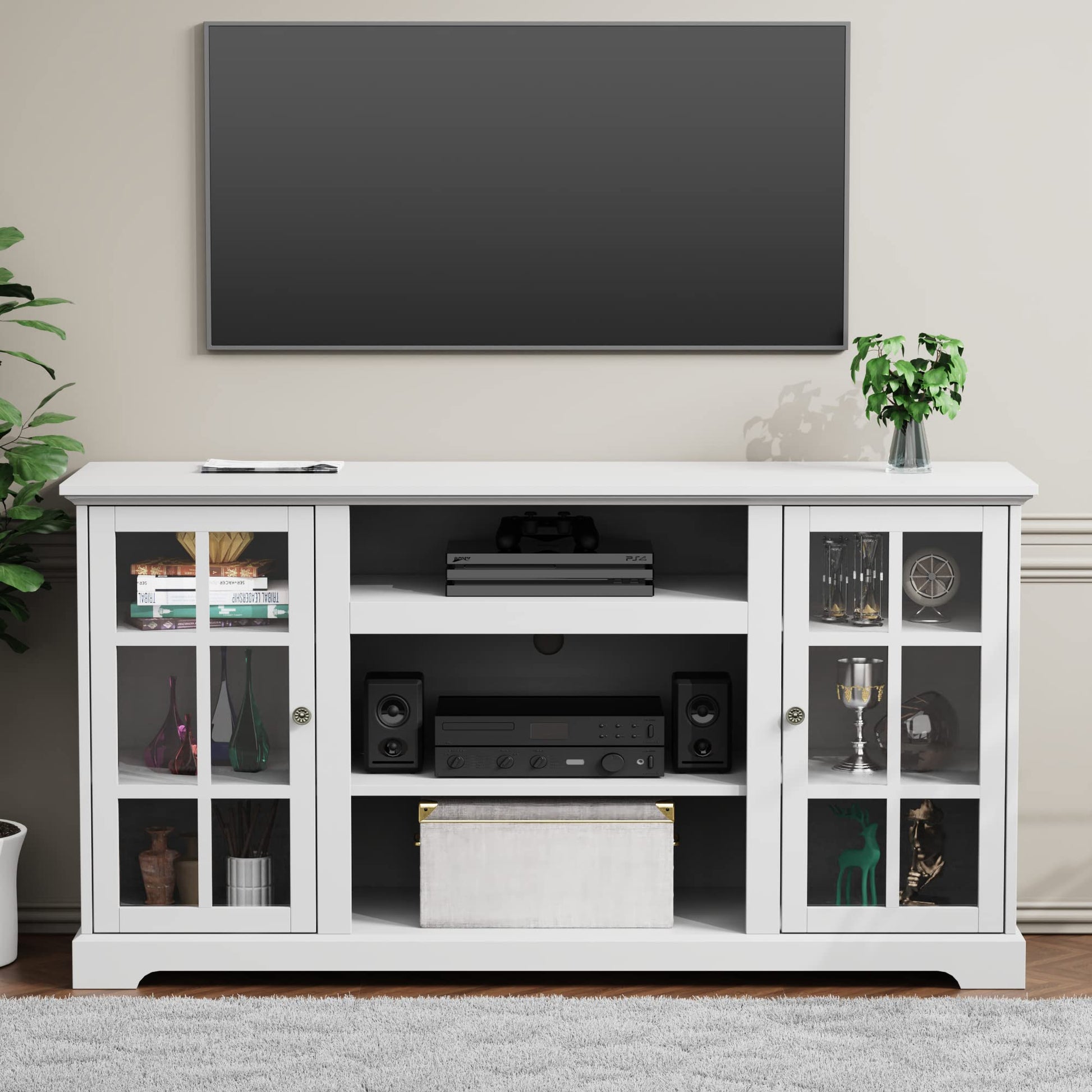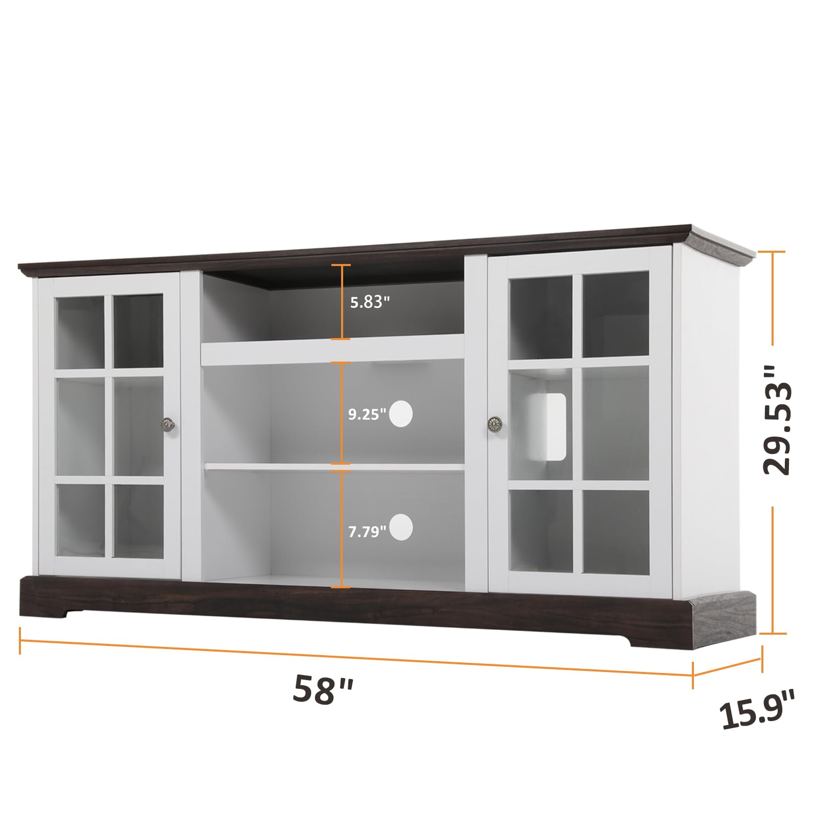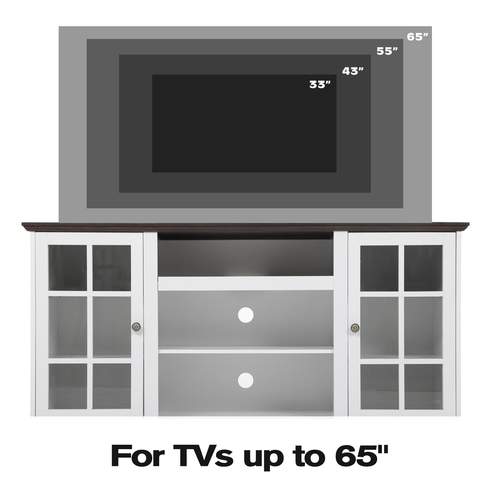 - 【Modern Farmhouse Design】: A farmhouse-inspired TV stand with a modern design. Sports a trendy white finish and double wood glass doors blends well with contemporary and farmhouse decor styles.