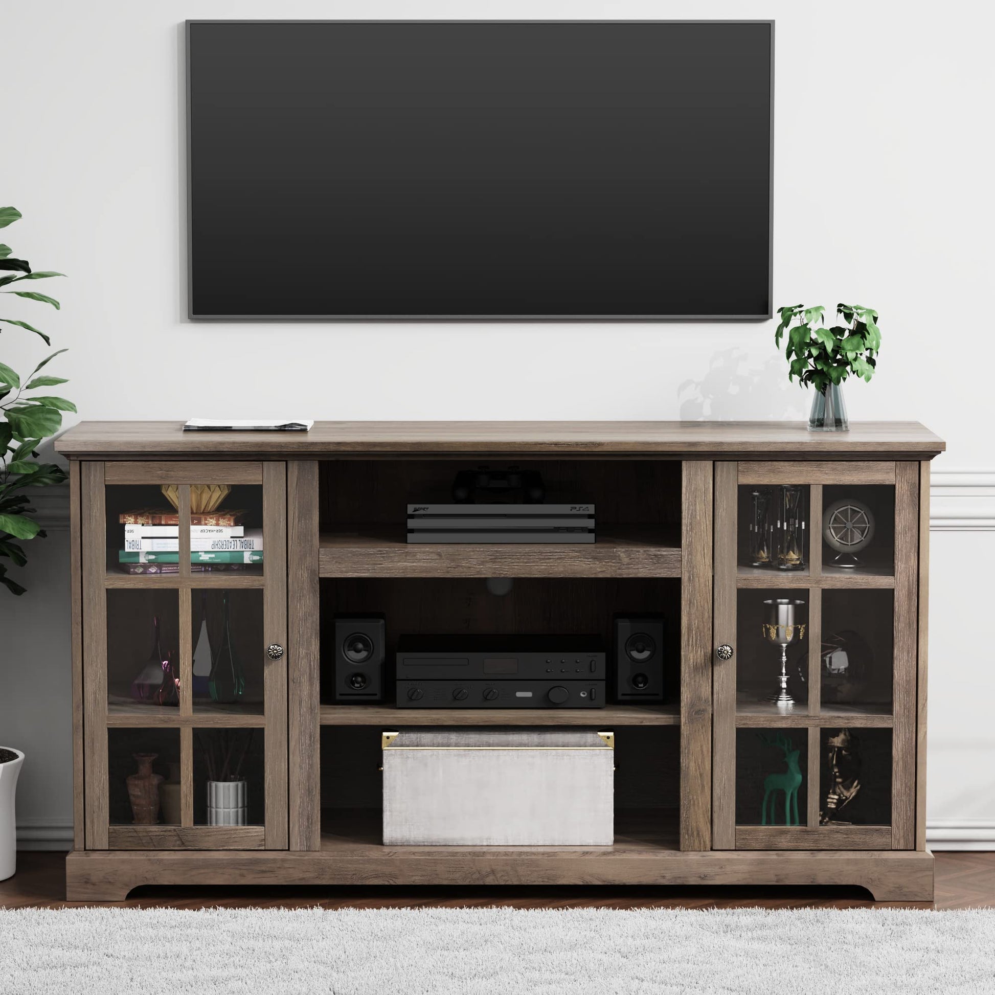 - 【STYLISH GLASS DOORS】 : Windowpane-style tempered glass cabinet doors give this entertainment center a decorative touch while enhancing child safety.